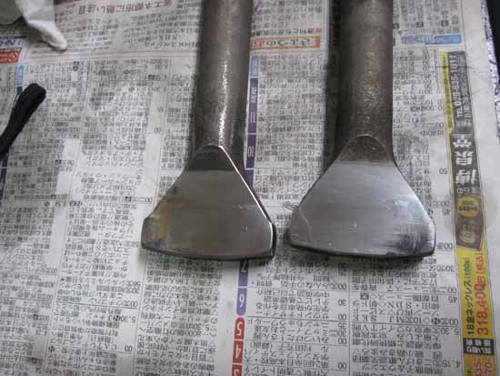写真右の左側のヘッドはブラスト処理を行ったもので、比較するとよ〜〜くお分かりいただけると思います。