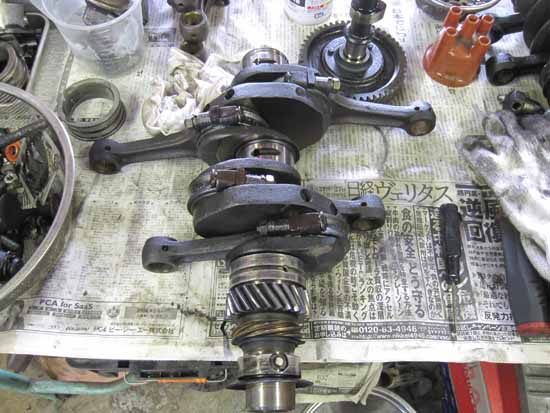 そしてクランクシャフトも・・・バッチイ・・・。