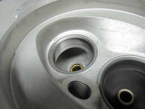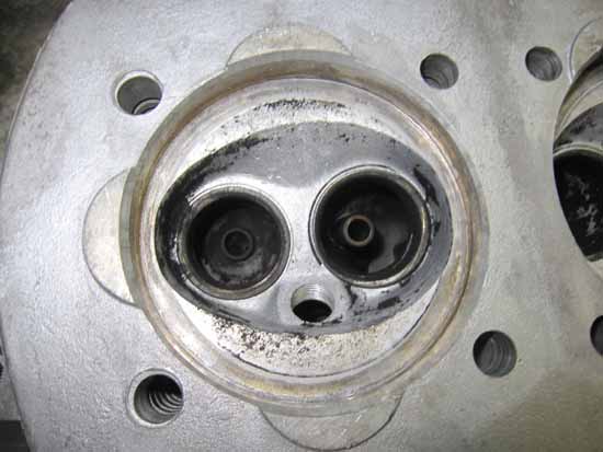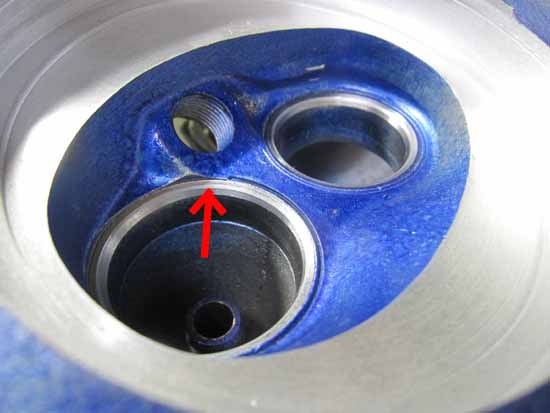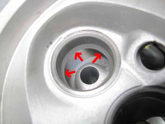 シートカットしたバルブシートとバルブフェースの当たり面にコンパウンドを塗ってクリクリ&パンパン♪するとキレイな当たり面が出てきます(写真赤矢印部)