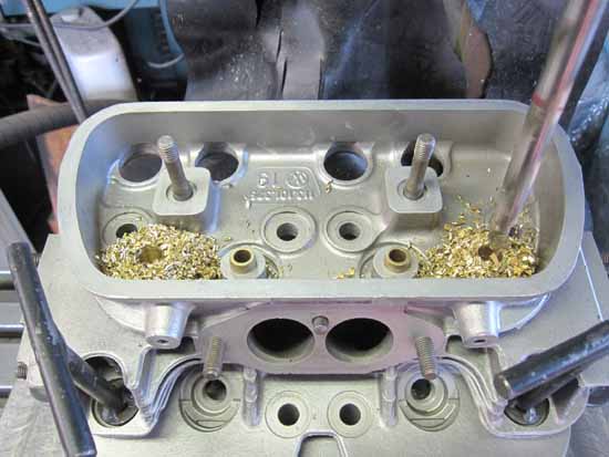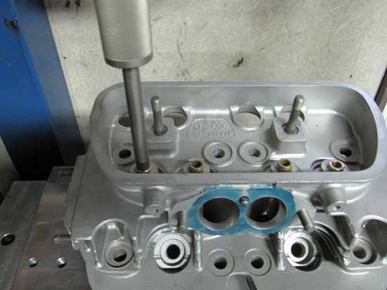 研磨作業が終わるとバルブガイドを入れます。