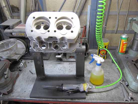 先ずはEXバルブガイドを抜き、作業台に固定します。