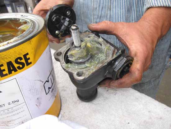 写真右がステアリングギアBOXのグリス交換です!