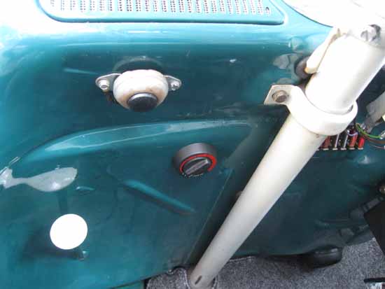 テンプゲージはステアリングの右横に、そしてベバストスイッチは左奥に取り付けてあります。