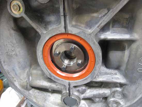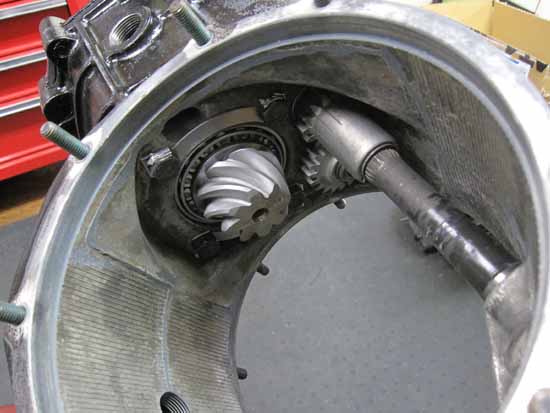 ミディエイトハウジングをケースに収め、内側からピニオンギアを見るとこんな感じです。