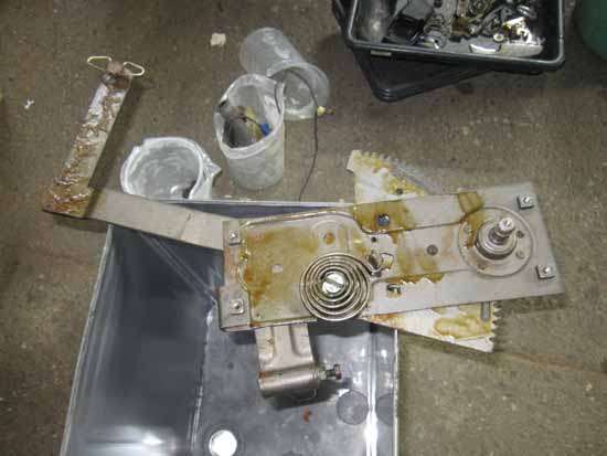 ウィンドレギュレーター、ロックメカニズムは組み付け完了し、ボディーに取り付けました。