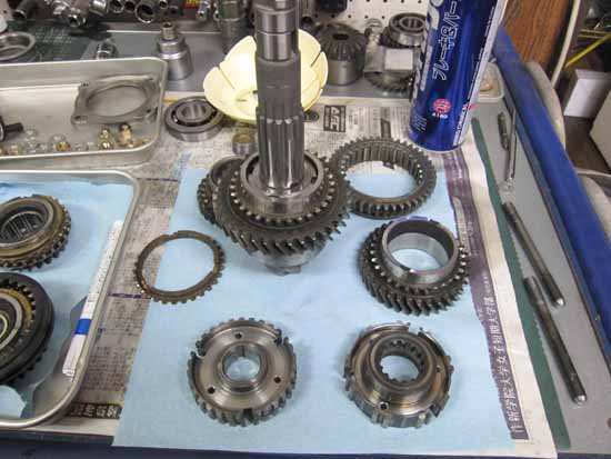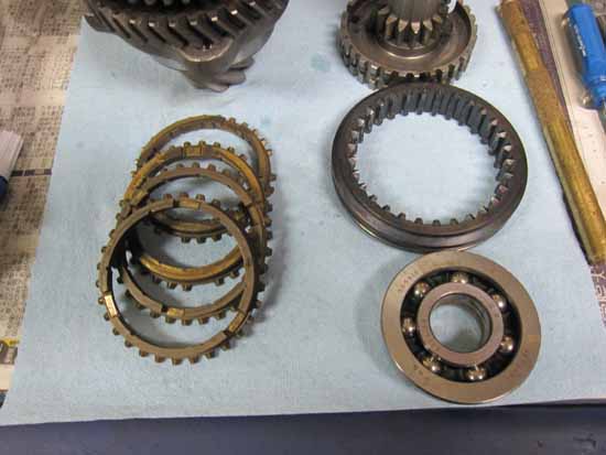 1〜4速シンクロリング、3−4速スライダーリング、メインシャフトボールベアリングになります。