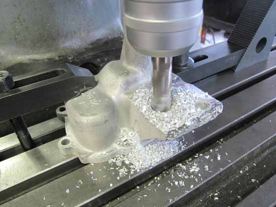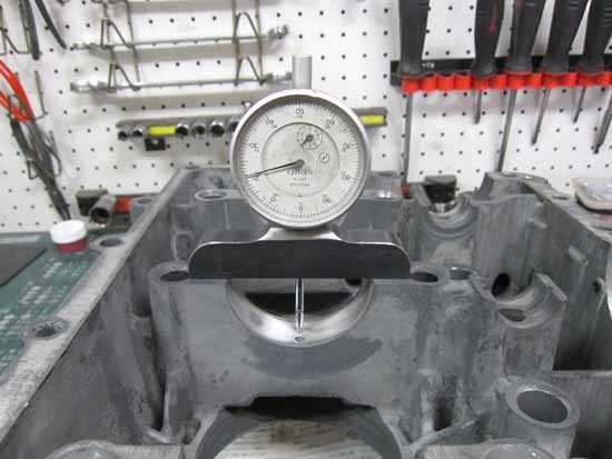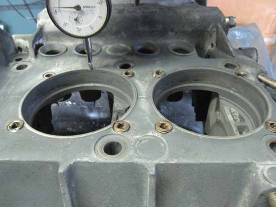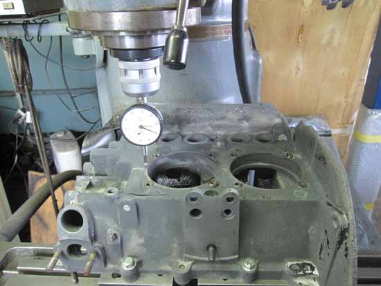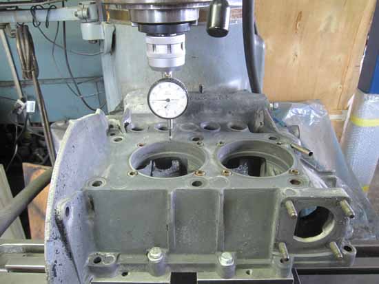 クランクケースをフライス盤にセットして、シリンダー座面の高さを計測してみました。