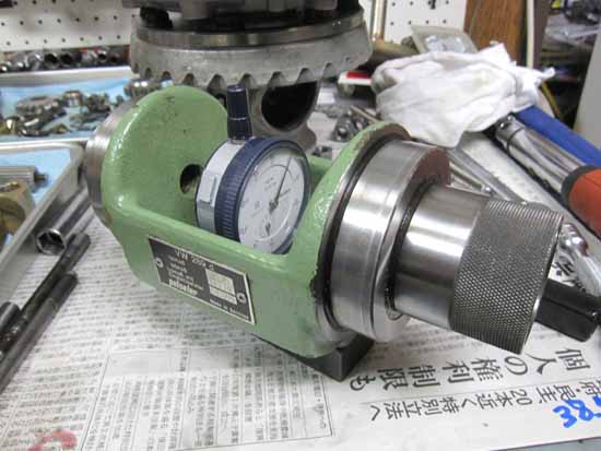 専用TOOLマンドレルを使い、ピニオンの突き出し量&サイドスラスト量を計測します。