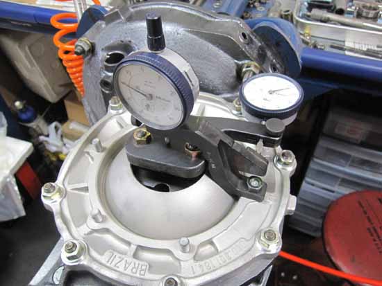 そして写真のバックラッシュTOOLをセットしてデフの左右に入るシムの厚みを探っていきます。
