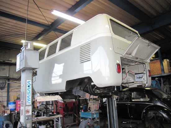 そして本日、BUSの下回りを高圧洗浄機でキレイにしてリフトに上げました。