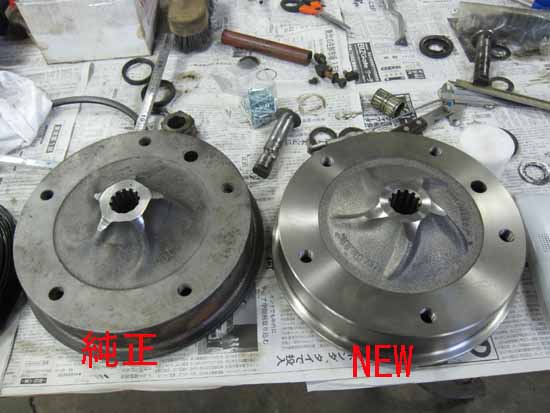 不具合が出ていたわけではなく、写真左の細かいギアから荒いギアへ交換いたしました。