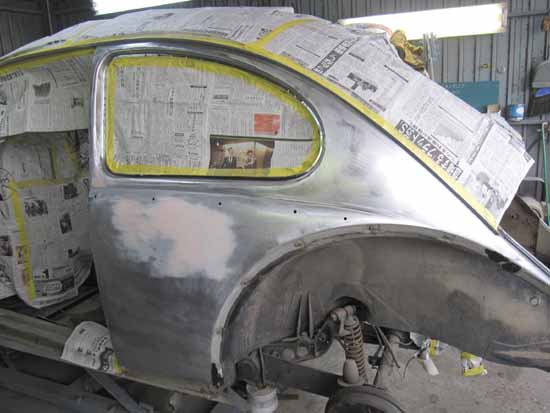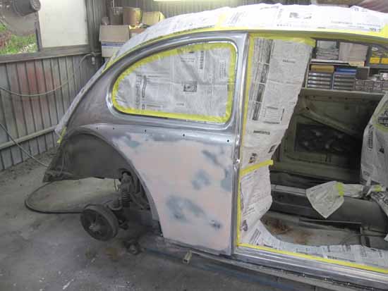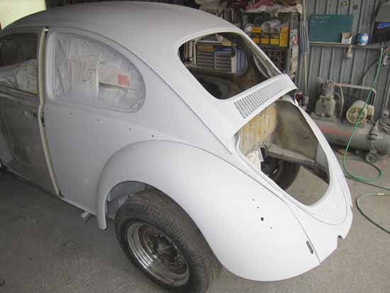 クォーターパネルにもサフェーサーが入りリア周りの下処理が全て完了いたしました。
