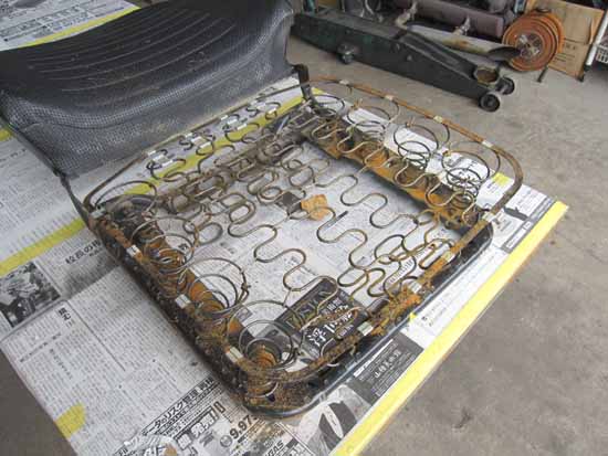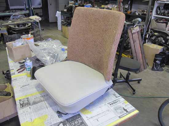 シートフレームには骨折跡もあり、全て修復してからシートパットを交換して張り替えています。