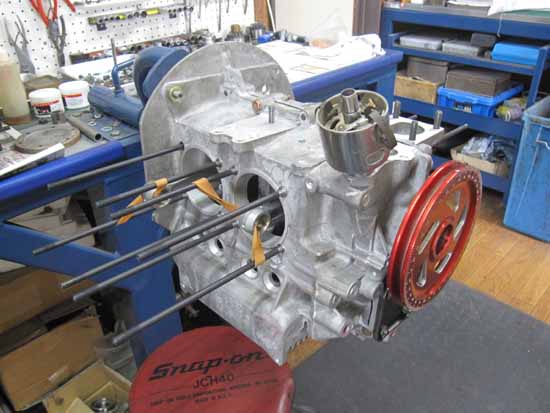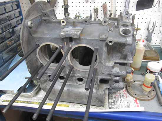 クランクケースの仕込を行いました。