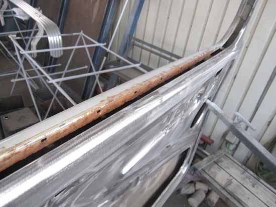 トリムフレームの裏側&ドア下のパネルにもサビの侵食があり、直そうか交換しようか・・・。