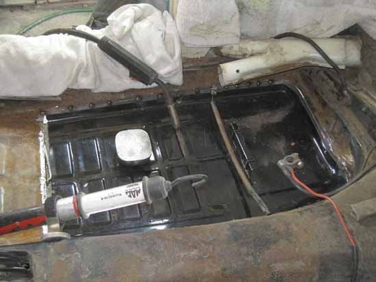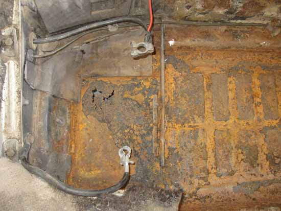 バッテリーフロアーもピンホールだけかと思っていたのですが・・・“かさぷた”を剥がすと・・・Oh〜〜〜(アゲイン)