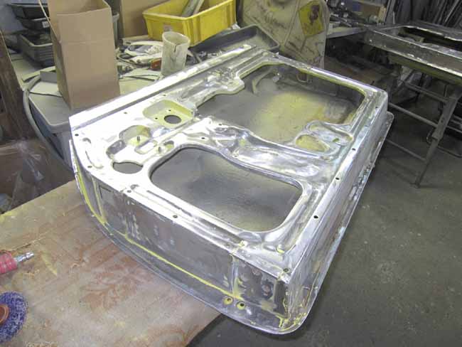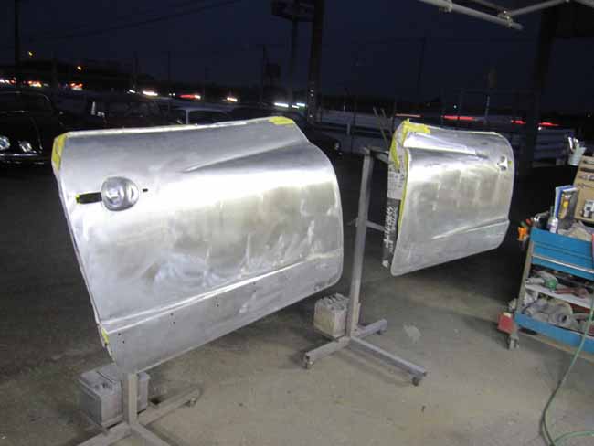 続いて左ドアパネルの下準備を行っています。