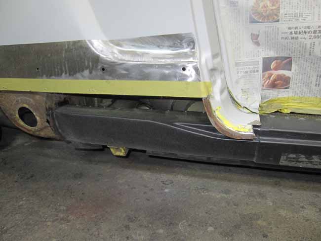 写真の黒いパネルはドア下は表に出ますが、写真右の部分はクォーターパネルの中に隠れてしまうんです。