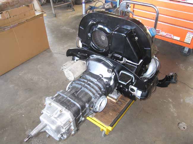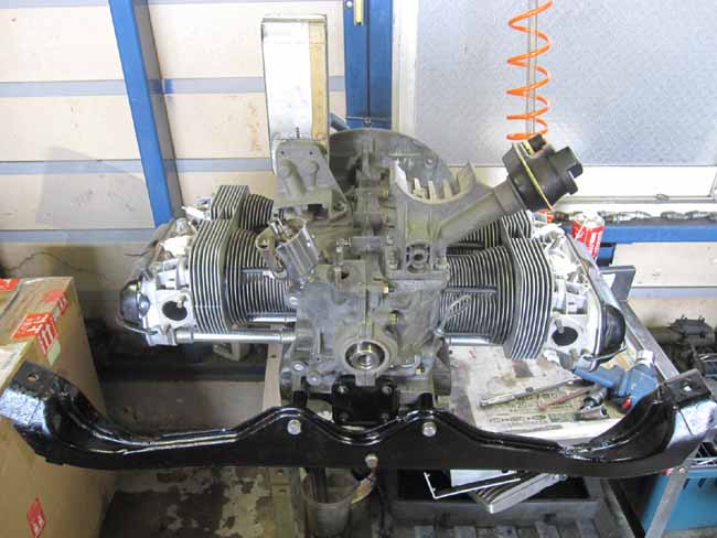 マフラー抜かしで組み上がったエンジンにミッションを合体!