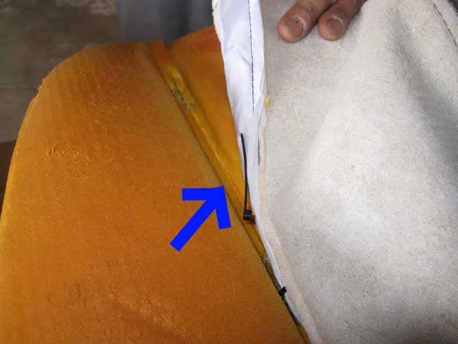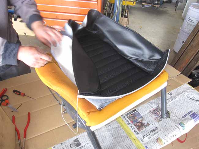 フロントシートのバックレストを張り替えています。
