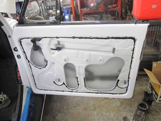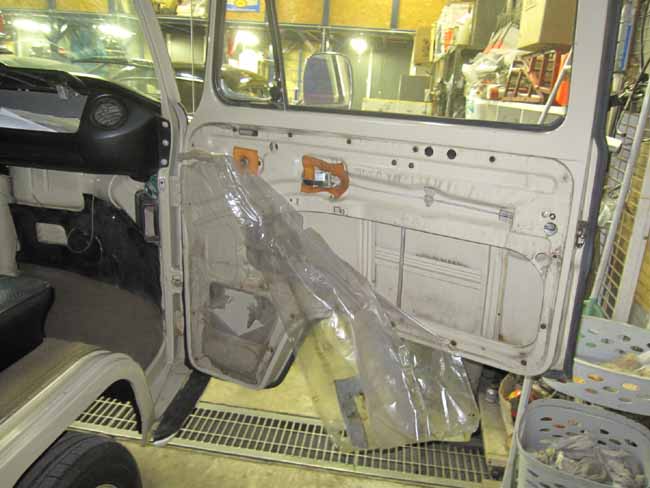 ドアパネルの内側には厚手のビニールを張ります。