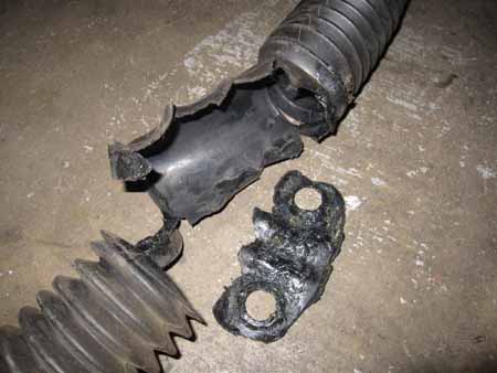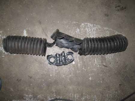 写真中央&右はステアリングギアボックスのラックブーツです。