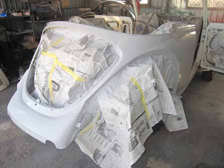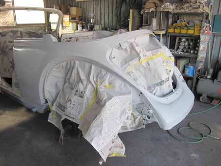 両サイドのクォーターパネル&リアエプロンにサフェーサーが入りました。