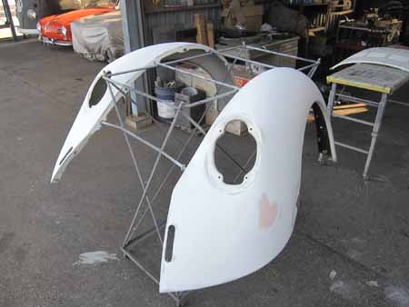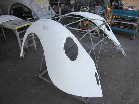続いての作業は左右のリアフェンダー&リアフードの下処理です。