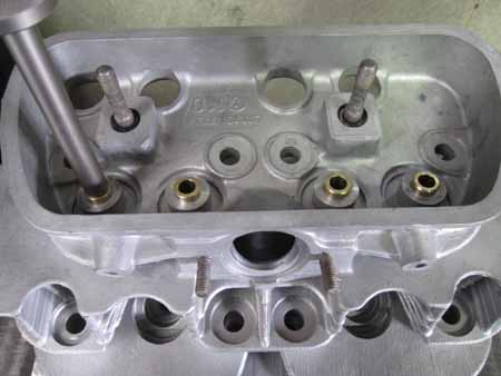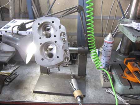 バルブガイドを抜き、ポート研磨を行い、EXフランジボルトの修正を行い、シリンダーヘッドの作業は折り返しです・・・。