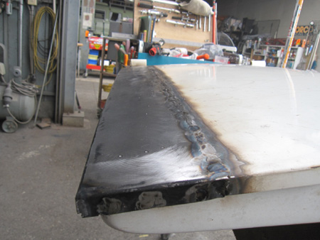 溶接してから面をサンダーで削ると熱でパネルは歪んでしまいます・・・。