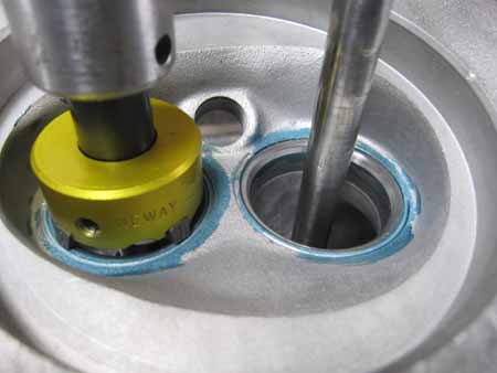 バルブガイドは先端をかる〜く修正してヘッドに圧入。