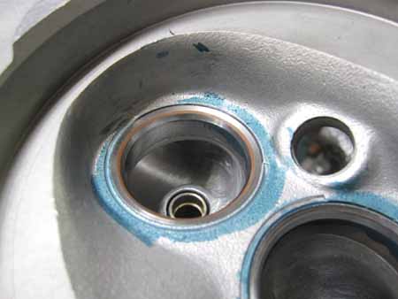 写真左がシートカット後にすり合わせを行い、バルブの当たりを確認をしているところです。