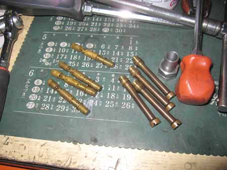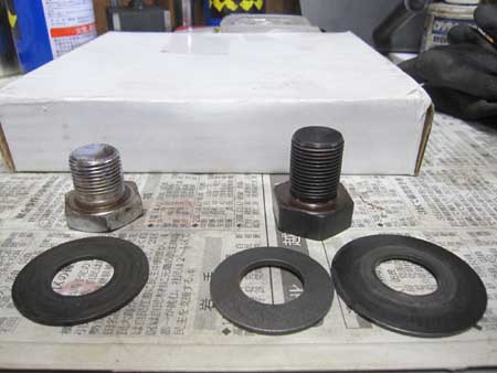 写真左はクランクプーリをセットするボルトです。