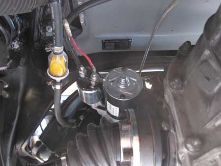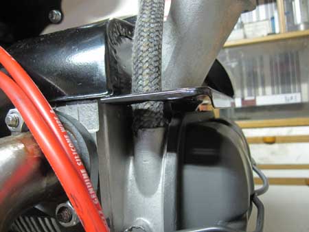 ファンハウジングの裏側にはフューエルラインを固定しています。