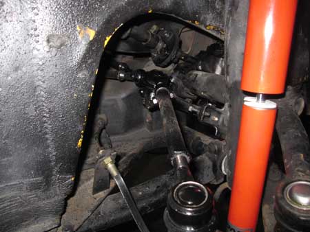 作業をフロント足回りに移してみると・・・先ず一番初めに目に入ってきたのが、タイロッドとフューエルタンクの干渉です。