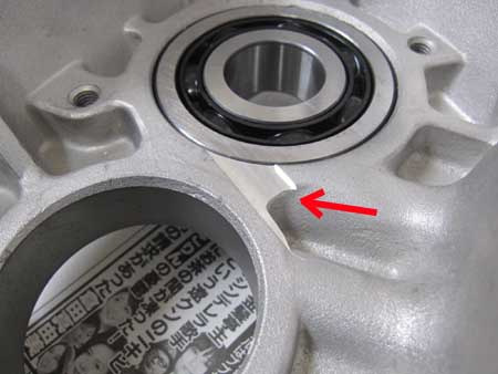 ミディエイトはナットの座面をスポットフェース加工&メインシャフトベアリングの部分にオイルの通路を設けてあります。(赤矢印部)