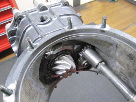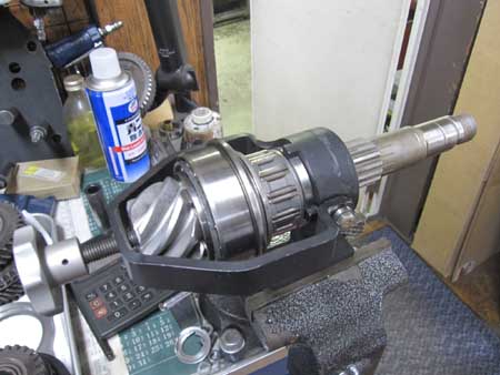 ピニオンシャフトにベアリング類を組み込み、デフケース内測を行いましょう。