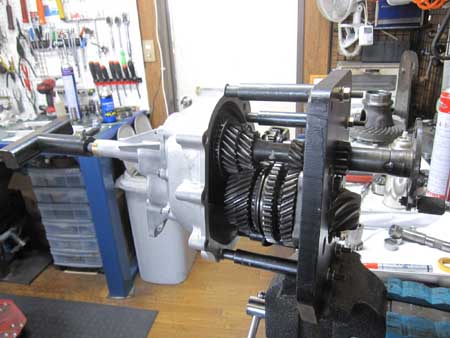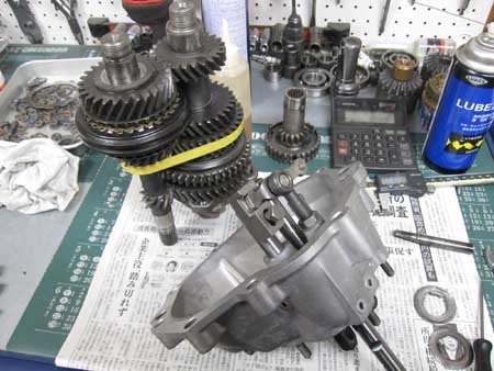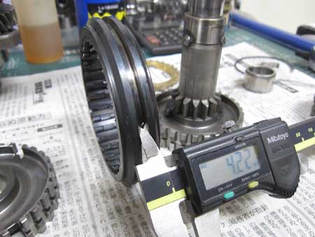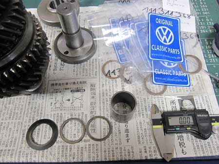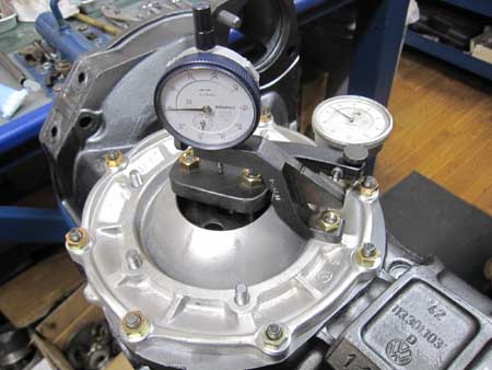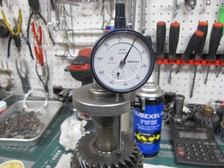 写真中央&右は3rdギアのシム厚を決めるための測定です。