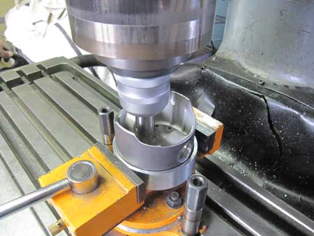 フライス盤にセットしてピストントップの裏側を少しずつ削ってウェイトを合わせていきます。