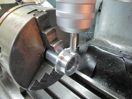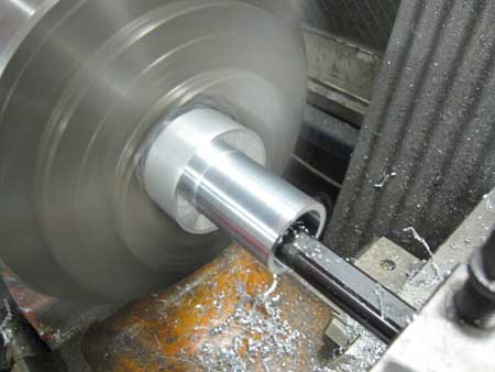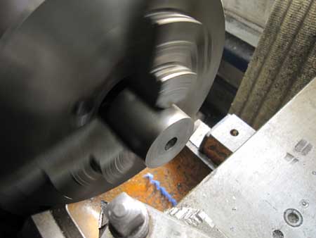 丸棒を切断して長さを整え、真ん中に穴を開けてからねじ山を作成します。