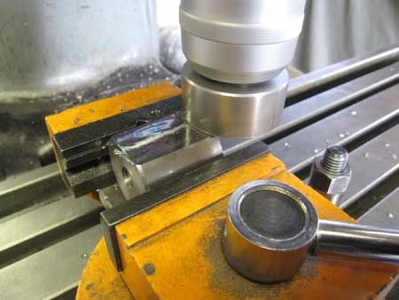 いつものようにフライス盤にセットしてオーバーサイズの穴を開けます。