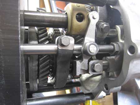 3本のシャフトが見えると思いますが、これが左右(車上では前後)に動いてシフトチェンジを行っています。