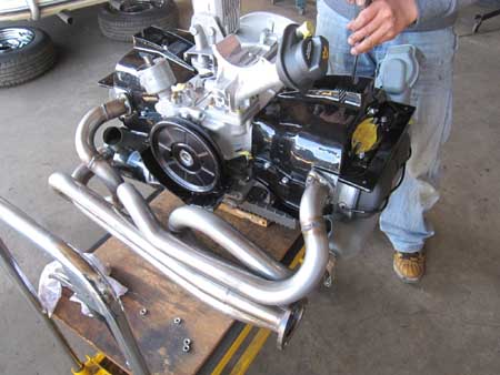 ロングブロックのエンジンを仮付けして一度着地させてみましたら・・・やはりフル加重かからないとキッチリした車高は出ませんね・・・。