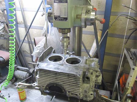 クランクケースのスポットフェース加工を行っています。