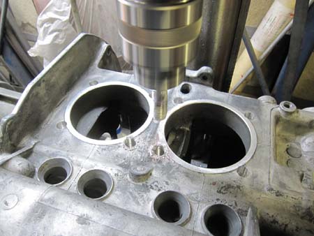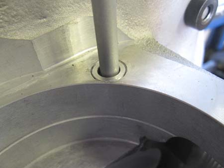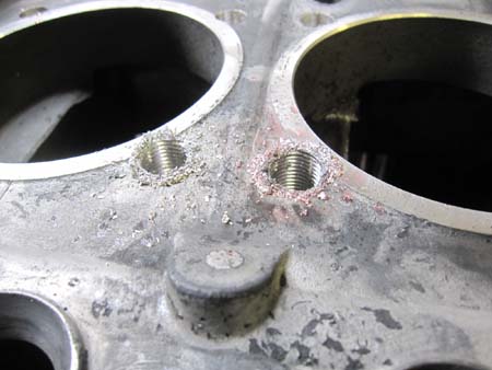 3番シリンダー上側のスタットボルトホールは一段落ちているため、アルミのブッシュを圧入しました。