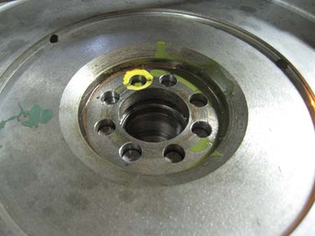 フライホイールに有るドリルホールがその跡です!