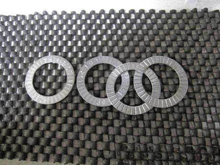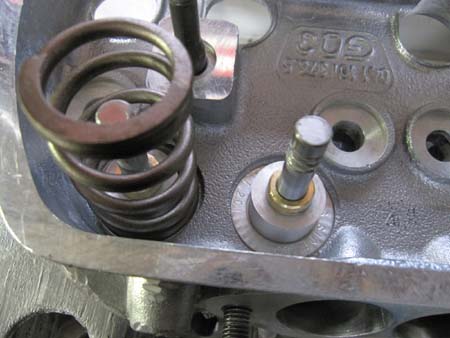 バルブスプリングの下にセットするのが「バルブスプリングシム」と言って、スプリングテンションの調整用に使用するのが本来の使い方ですが、硬いスプリングからヘッドを守る役目もします。