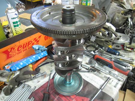 ピン加工が終われば、フライホイール&クランクシャフトのダイナミックバランスに出します。