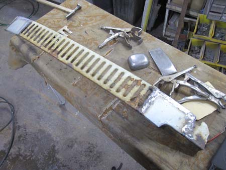 型紙から製作したパネルを溶接して、ある程度形になったエプロンを仮付けしてみるとイイ感じです!
