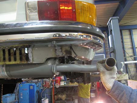 オリジナルのマフラーは錆のため再使用不可・・・かといってT−4用のマフラーは見つけることも大変です。